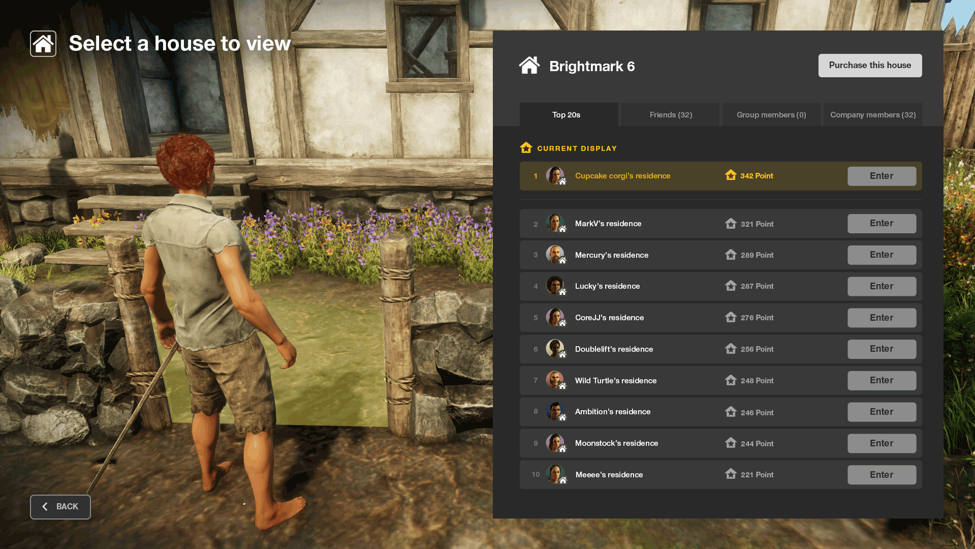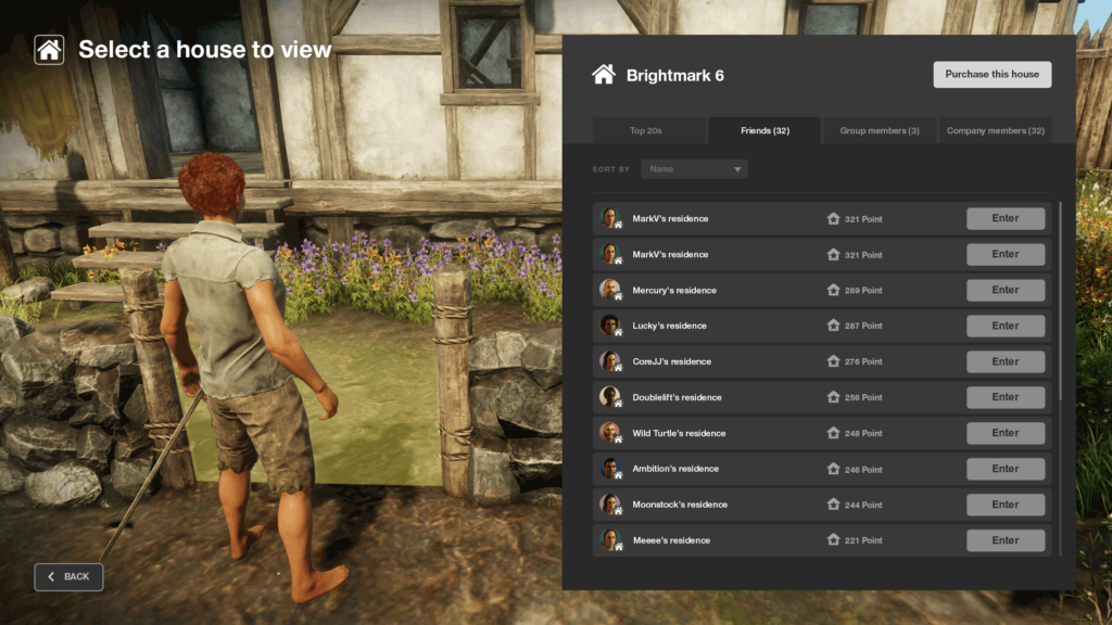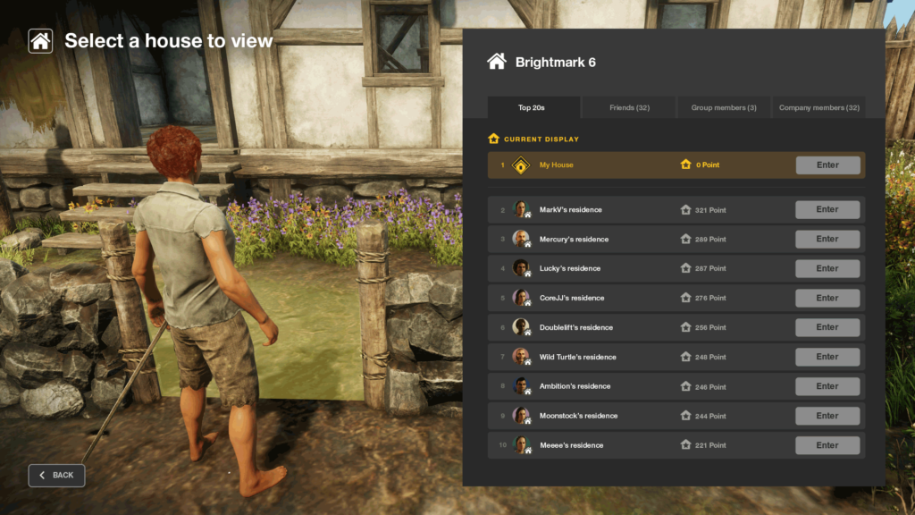• Within a single plot, many players can reside. However, only one player’s house is publicly visible to others, and showcasing the game mechanic that determines this.