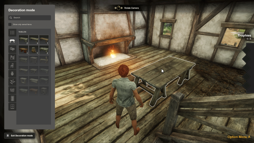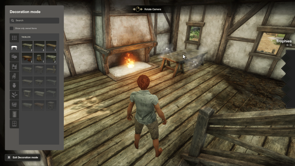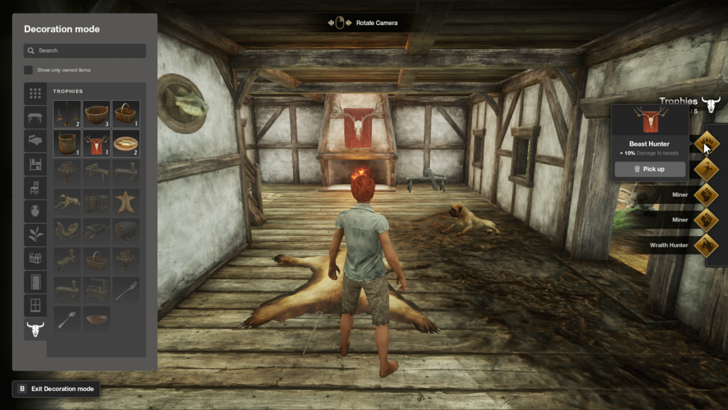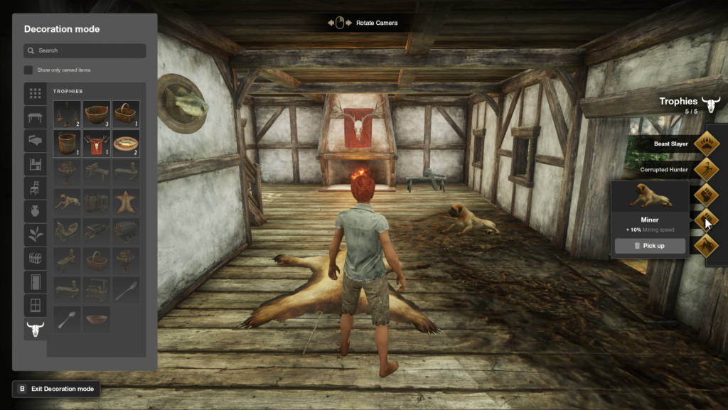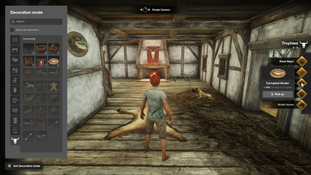 • Trophies in houses provide passive bonuses.